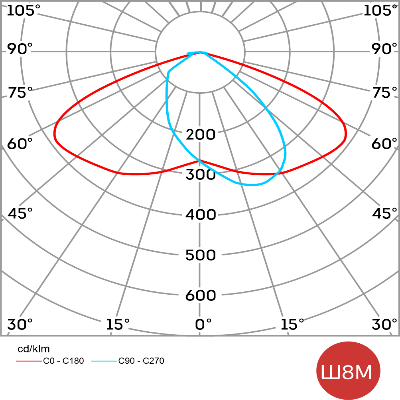| Тип кривой силы света | Ш8М, Ш - широкая |