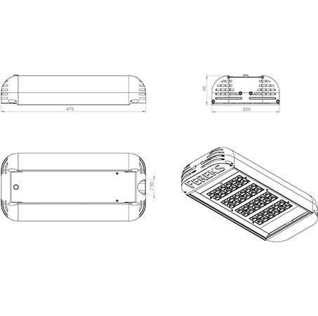 | Габаритные размеры светильника, мм | 220х95х470 |