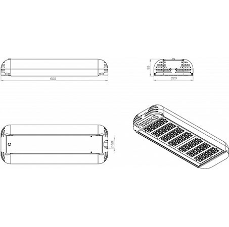 Габаритные размеры светильника, мм 220х95х600