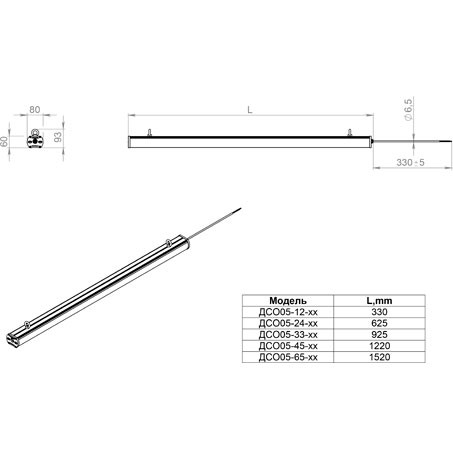 | Габаритные размеры светильника, мм | 80х1500х60 |