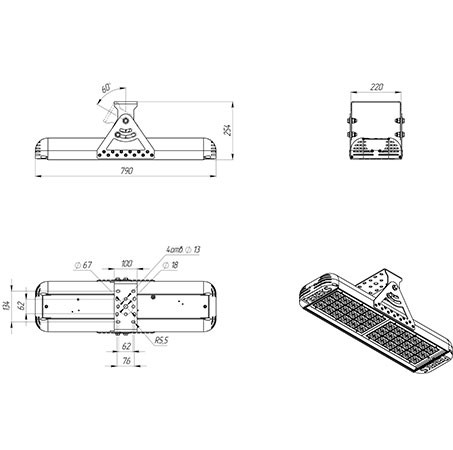 | Габаритные размеры светильника, мм | 790х250х255 |