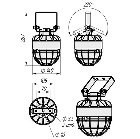 | Габаритные размеры светильника, мм | Ø140x267 |