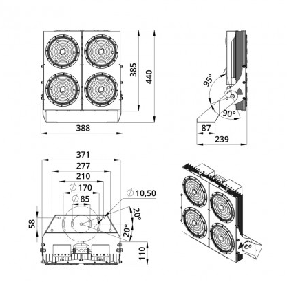 Габаритные размеры светильника, мм 440 х 388 х 239
