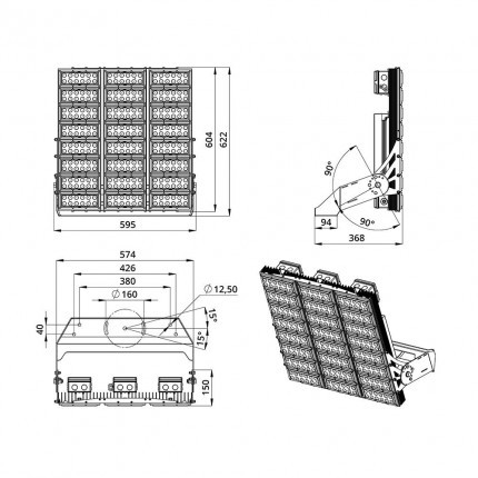 Также это исполнение имеет поворотные модули, которые можно ориентировать независимо друг от друга в разных направлениях. Количество модулей варьируется в зависимости от мощности светильника.