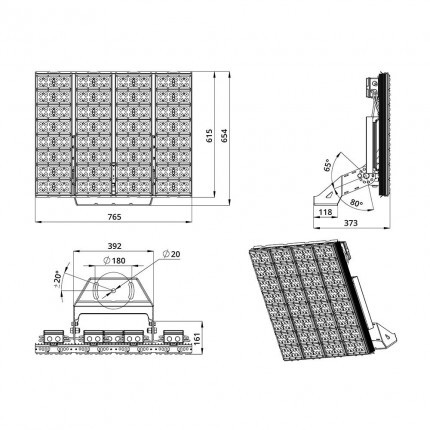 В комплекте идёт кронштейн, который позволяет регулировать угол наклона светильников. Специальные зубцы на кронштейнах дополнительно облегчают регулировку положения прожектора.