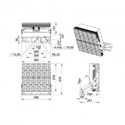 | Габаритные размеры светильника, мм | 416×398×261 |
